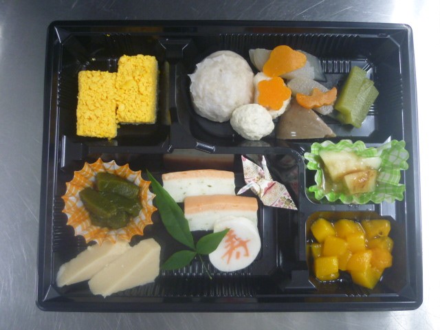 その後、江戸時代になり、正月に「祝い肴(いわいさかな)」という縁起物を重箱に詰めたものが現代の『おせち料理』に近い形になったと言われています。当院でも毎年お正月は『おせち料理』、三が日は『雑煮』を入院患者のみなさまに提供させていただいています。